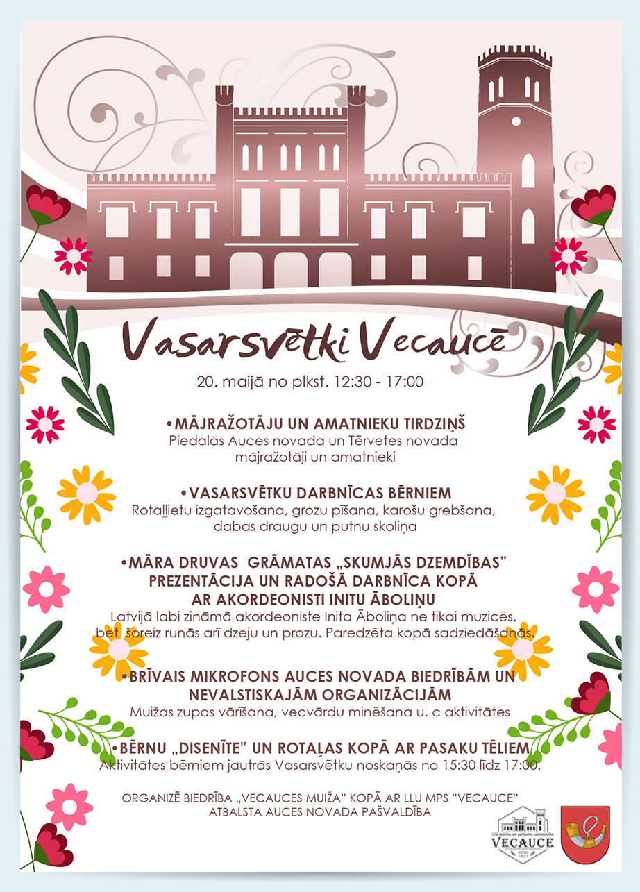Aicinām 20.maijā uz pils dārza svētku pasākumu "Vasarsvētki Vecaucē”