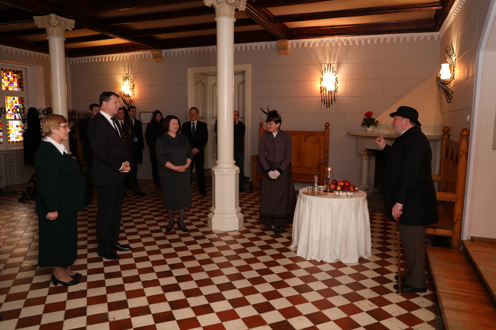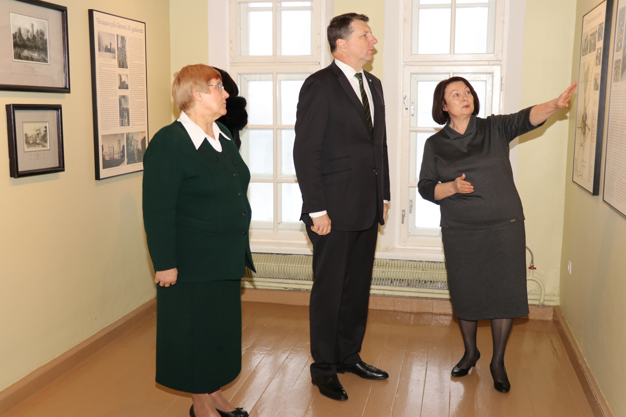 Latvijas Valsts prezidents Raimonds Vējonis un Iveta Vējones kundze piektdien, 23. februārī, ieradās Aucē, lai reģionālajā darba vizītē iepazītos ar novada aktualitātēm, tiktos ar iedzīvotājiem un arī apmeklētu lielākos novada uzņēmumus un vidusskolu. Vizītes noslēgumā pirms tikšanās ar iedzīvotājiem Valsts prezidents apmeklēja Vecauces pils vēstures ekspozīciju, kas izveidota pateicoties VKKF finansētajiem projektu konkursiem, un sniedz ieskatu par Vecauces muižu, tās īpašniekiem un Auces pilsētas piemsākumiem. Kā jau visos svarīgākajos notikumos pilī Valsts prezidentu sagaidīja ne tikai pils pārvaldniece, bet arī paši muižas īpašnieki no 19.gs.- grāfs Mēdems ar kundzi.