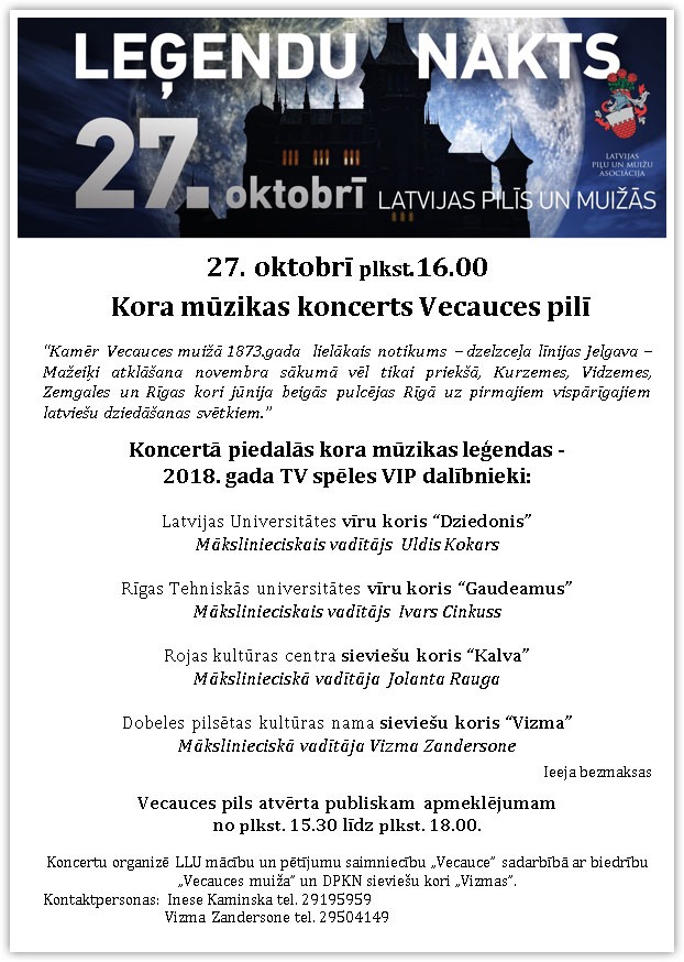 Aicinām 27. oktobrī plkst. 16:00 uz kora mūzikas koncertu Vecauces pilī