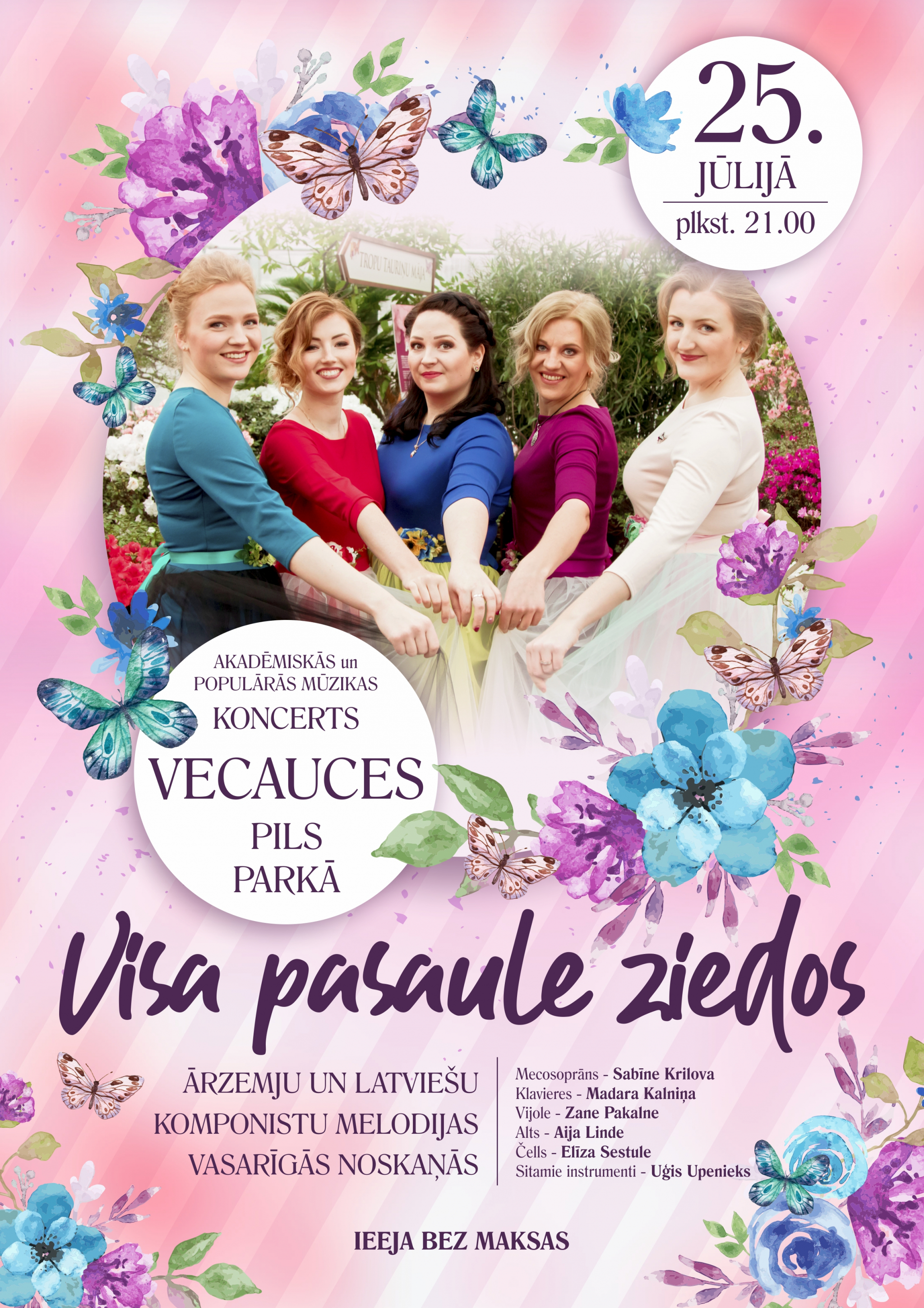 25.jūlijā plkst. 21.00 Vecauces muižas parkā romantiska ceļošana laikā akadēmiskās un populārās mūzikas koncertprogrammā "Visa pasaule ziedos"