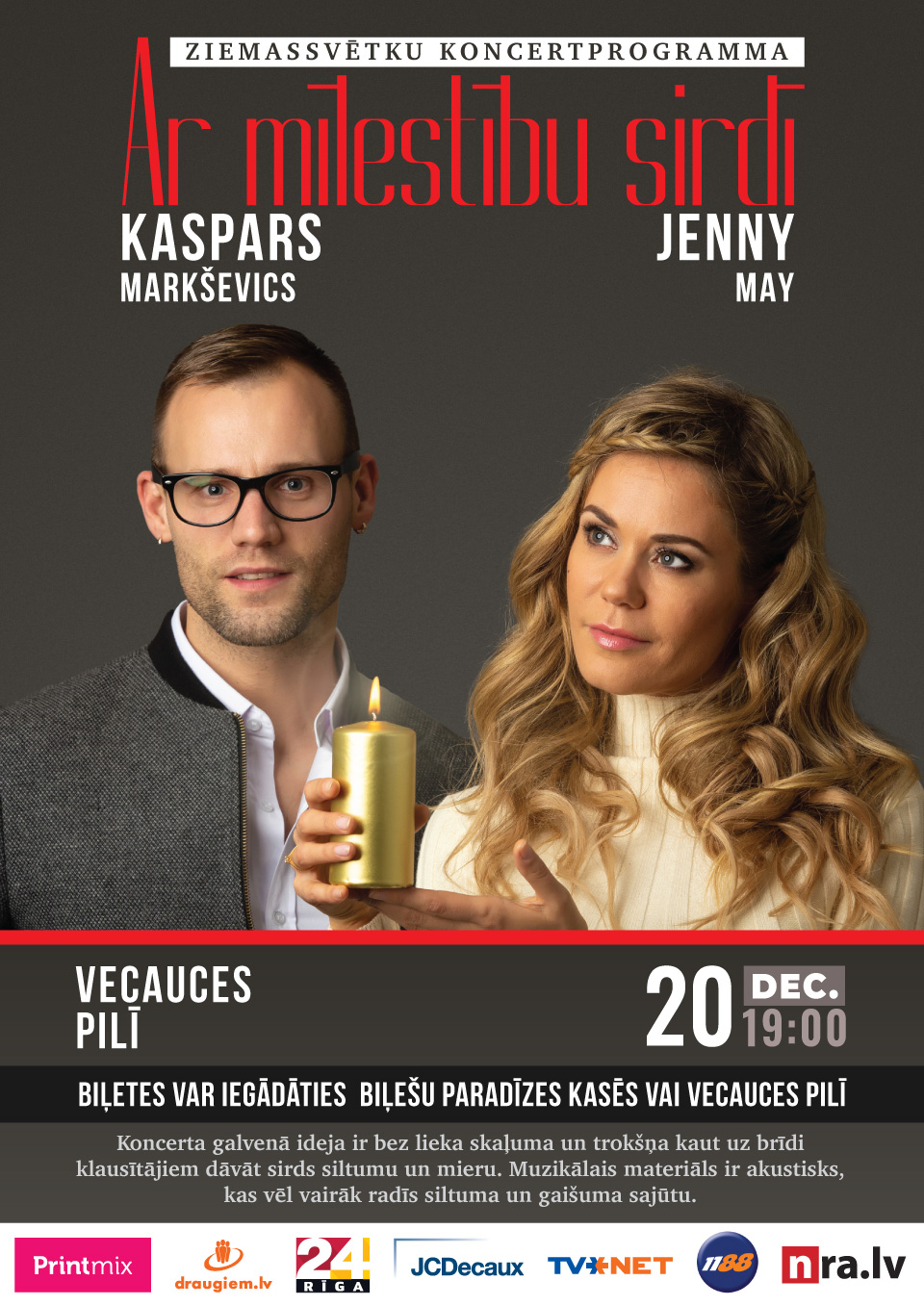 Kaspars Markševics un Jenny May Ziemassvētku koncertprogrammā AR MĪLESTĪBU SIRDĪ
