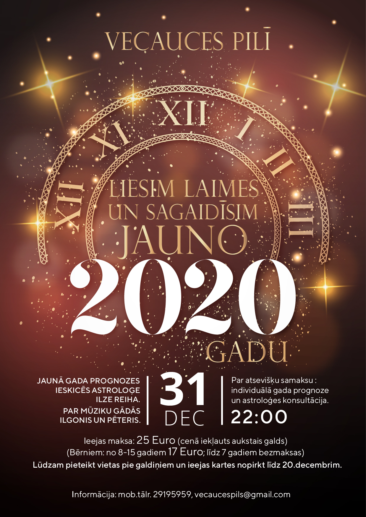 Liesim laimes un sagaidīsim Jauno 2020. gadu Vecauces pilī!