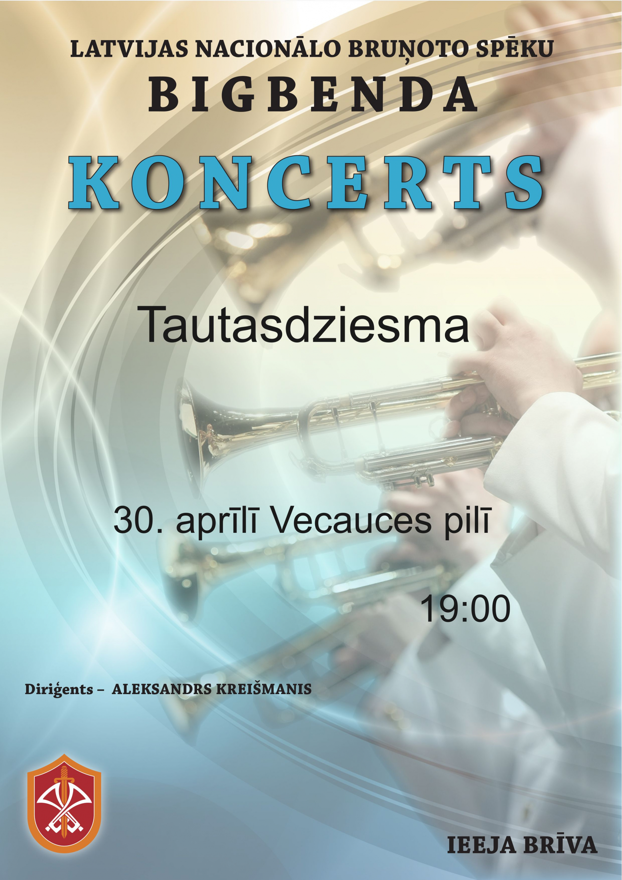 30.04.2019. plkst.19:00 Latvijas nacionālo bruņoto spēku bigbenda koncerts