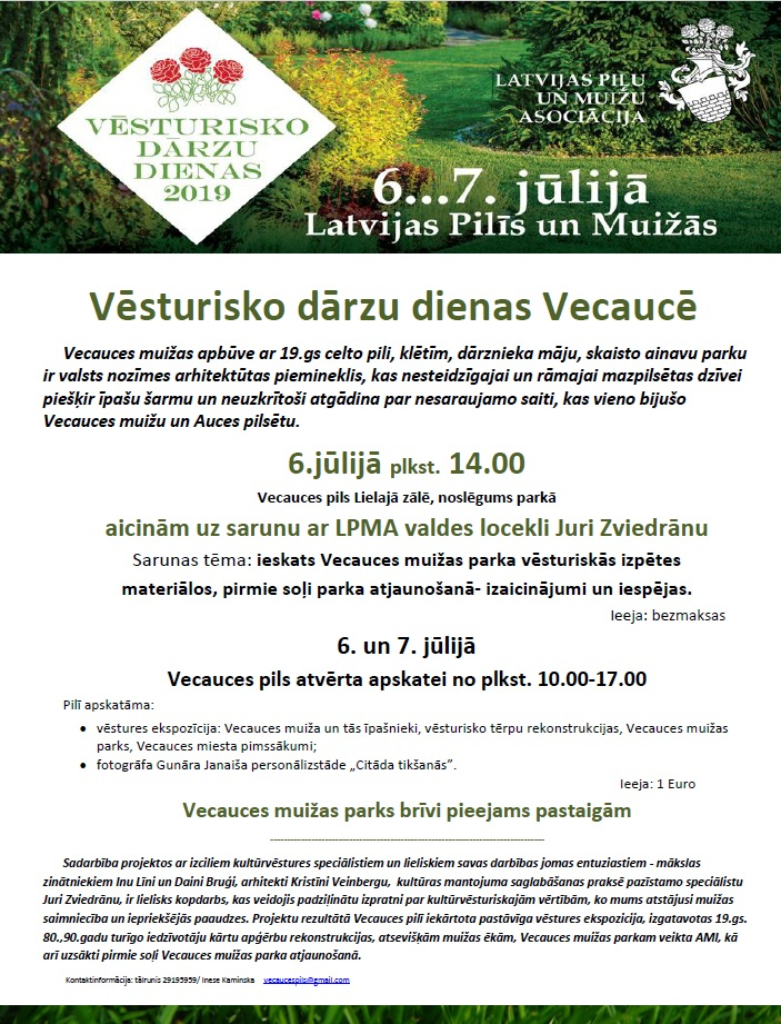 Vēsturisko dārzu dienas 2019, 6.-7. jūlijā