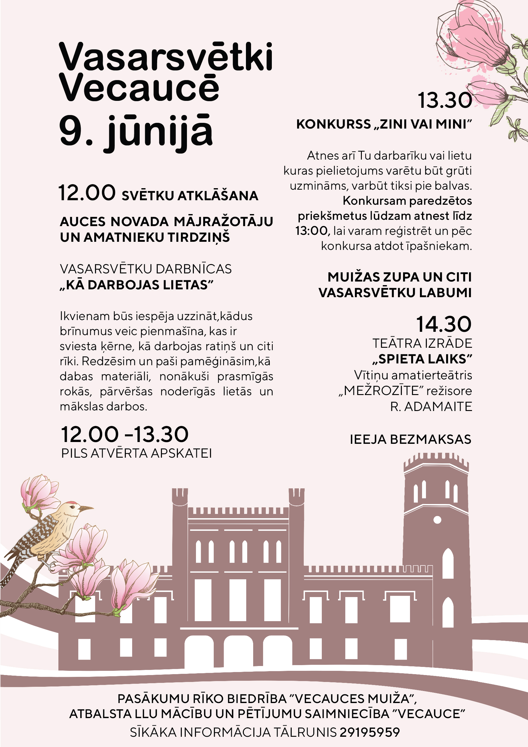 Lai kopā pavadītu Vasarsvētku pēcpusdienu, svētdien 9.jūnijā plkst. 12.00 aicinām uz Vecauces pili Vasarsvētku darbnīcās šogad varēsim līdzdarboties un uzzināt kādus brīnumus veic pienmašīna, kas ir sviesta ķērne, kā darbojas ratiņš un citi rīki. Darbosimies kopā ar...28.05.2019.